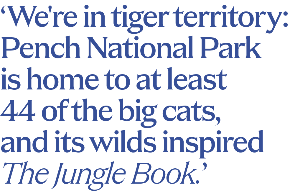 We are in tiger territory, though — Pench National Park in the central Indian state of Madhya Pradesh is home to at least 44 of the big cats, and its wilds inspired The Jungle Book. Besides real-life Shere Khans, many of the creatures familiar from Kipling’s cast can be found here, from Bagheera (‘leopard’ in Hindi) and Baloo (sloth bear) to the Bandar-log (grey langur monkeys) and Indian wolves.