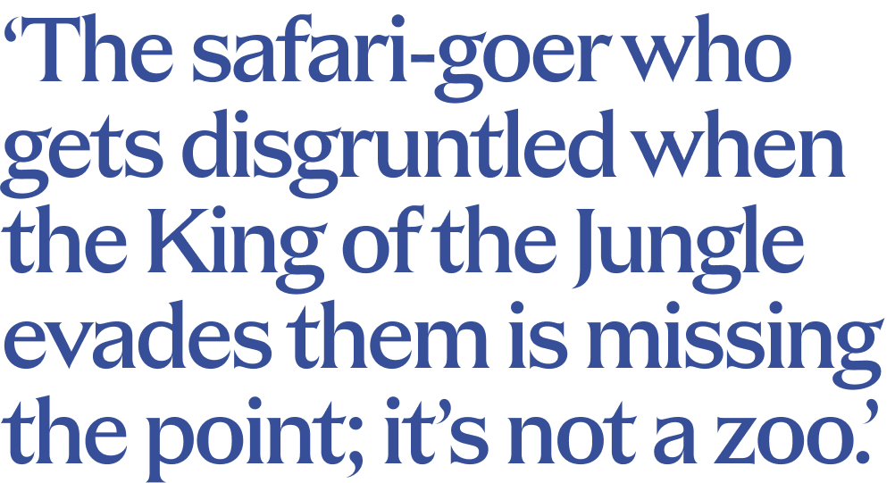 Reading Mowgli’s adventures as a child, it was the wolf pack who sang my favourite rhyme: Law of the Jungle. This passage featured such sage advice as ‘wash daily from nose tip to tail tip’, ‘drink deeply, but never too deep’ and ‘kill not for pleasure of killing’ — that last one a poignant reminder of how India’s wild tiger population plummeted from some 40,000 in 1900 to fewer than 2,000 in 1973.