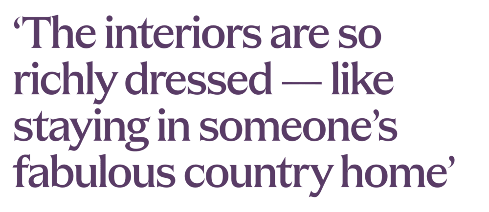I love everything [on the menu] from the fire — the smoked aubergine dip is to die for. I find all the rooms really gorgeous, because the interiors are so generous and richly dressed. You feel like you are staying in someone’s fabulous country home.