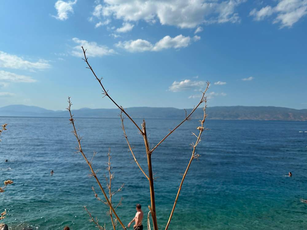 It’s always worth peering over the cliffs on Hydra, as more often than not you’ll be met with a surprise swimming spot or a cocktail bar clinging to the edge of the coast. After my emotional bench experience, I’m pleased to locate Hydronetta, where I gulp down ice-cold sparkling water as I treat my eyes to a view of the hazy Greek mainland. Just along from here, the aptly named Sunset Hydra is another spot made for sundowners. I pass a precarious set of steps clearly marked ‘Do not enter’ yet spy several people traversing them anyway, down to Avlaki Beach at the bottom. Leaning over the cannons below the admiral Pavlos Kountouriotis’s mansion, now a museum, I am greeted by a Slim Aarons shot of towels laid out on the rocks and swimmers cooling off in the water.