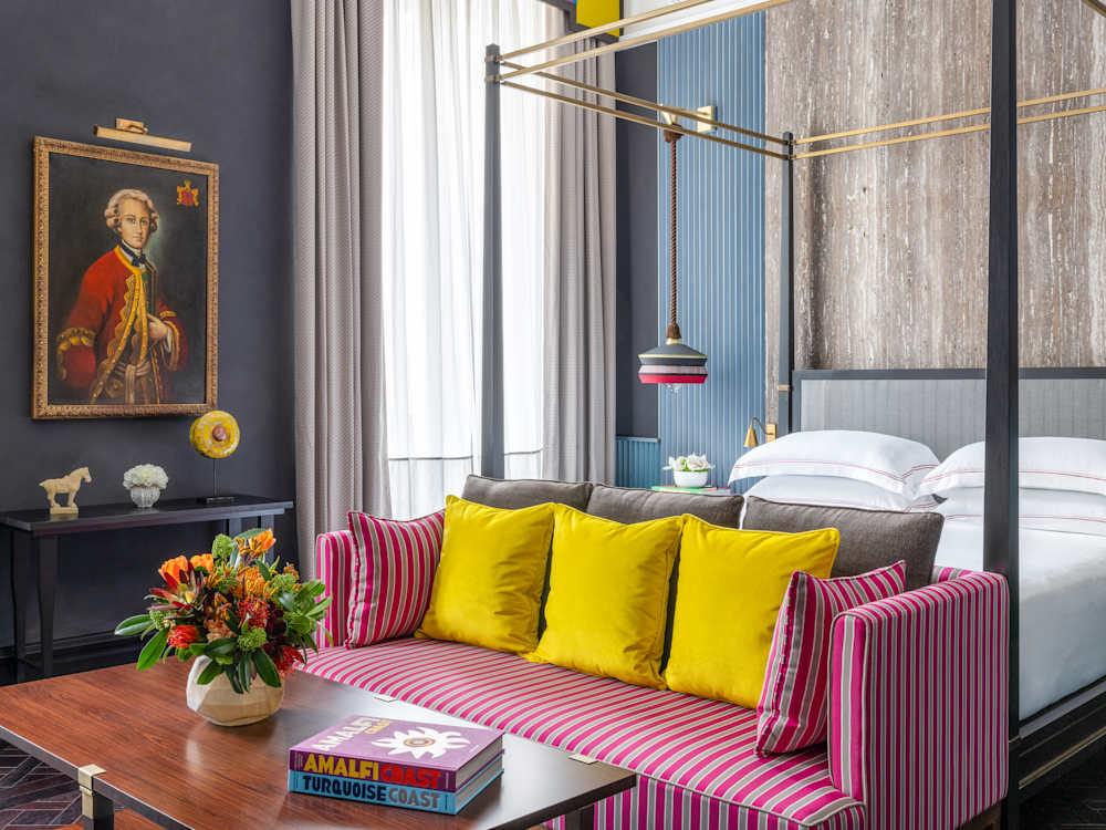 Palazzo Roma is located in the centre of Rome, on main drag Via del Corso, and was built in the 16th century. It has about 40 bedrooms and despite being in the middle of a very busy street, feels immediately calming on arrival. We were warmly greeted by the very charming team at the front desk, who immediately checked us in, took our bags and showed us to our bedroom. The room was very generous and I was pleased to find a mixture of classical Italian furniture, some warm and playful colours, and a few discreet nods to the Renaissance. The quality of the finishes was exquisite and great attention had clearly been paid to each small detail.
