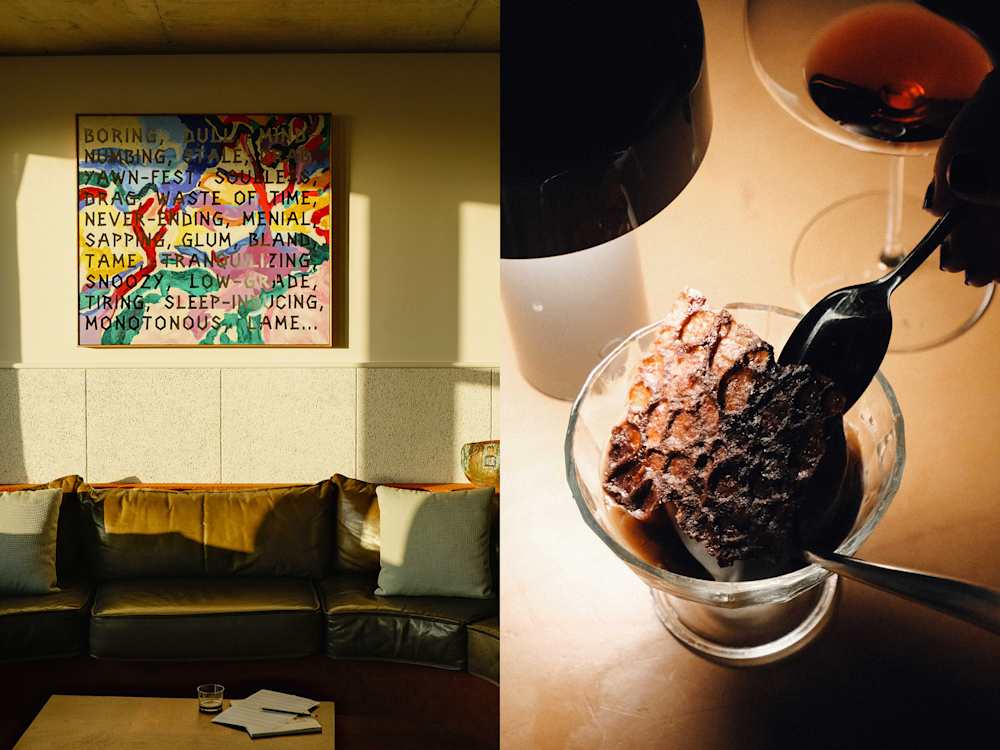 Before dinner, stop at The Roosevelt, a moody cocktail bar that channels 1940s New York and serves theatrical, tongue-in-cheek cocktails like Re-fashioned #4.2: a bold hybrid of a Margarita and an old fashioned, made with jalapeño mezcal and served over a white-chocolate ice sphere with a spiced rim. Then head to Ursula’s, the Paddington neighbourhood’s go-to for elegant, modern Australian fare by chef Phil Wood, where the salmon roe-and-egg sandwich and roast chicken stuffed with crab and scallop mousse are standouts. Make sure to book ahead — this is a local favourite and tables fill up quickly.