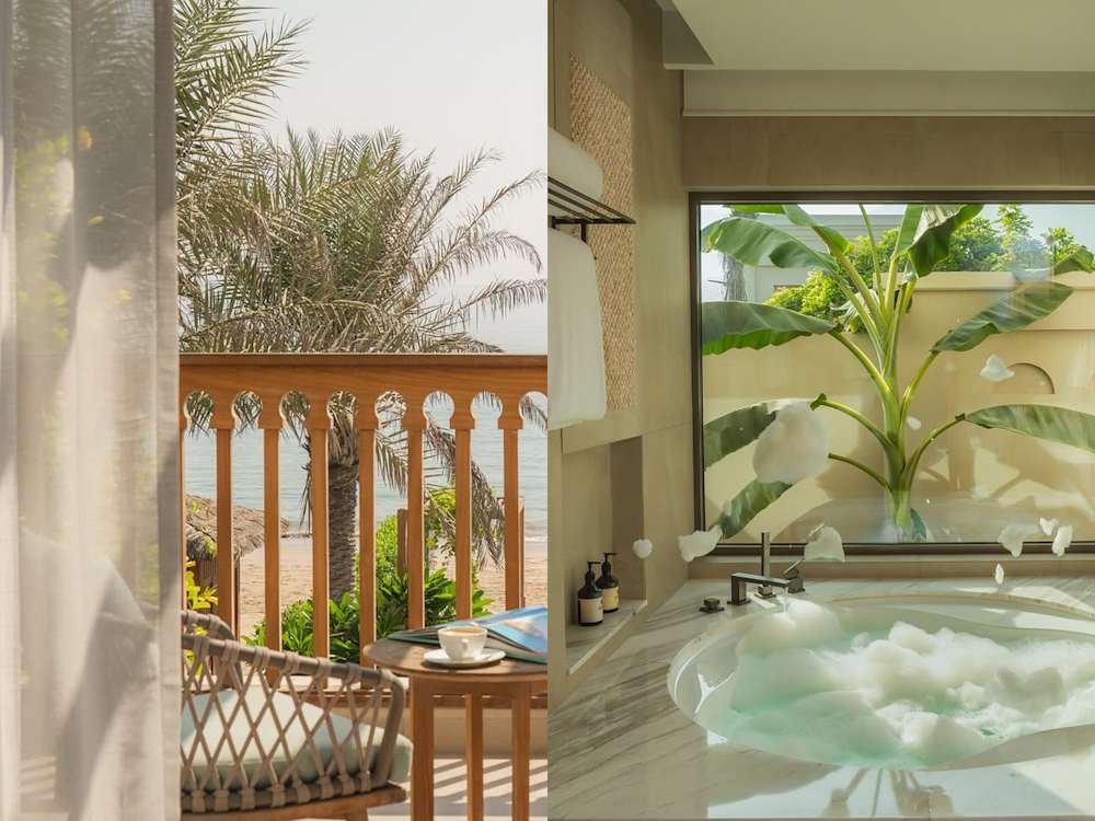 Naama resort can’t help but dazzle, sitting pretty between the Hajar Mountains and the Indian Ocean. But unlike neighbour Dubai, here flashiness is forgone in favour of more subtle luxuries: quiet days on Al Aqah’s sands, snorkelling off Snoopy Island (yes, it does resemble the cartoon beagle), worshipping nature with hikes through cathedral-esque wadis, your butler bringing cocktails to your private villa. Yes, a butler — ok, I admit, it does still run at a high level of luxury, just look at its Aladdin-esque spa with all the spoiling things, the lobster- and wagyu-laced dinner menu and well-appointed villas, each with a garden, some from which you can step right onto the shore. So, among all the serenity there’s a noticeable amount of sparkle, too.