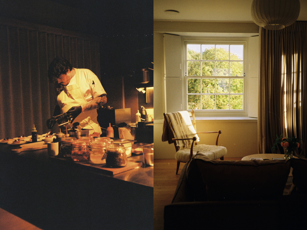 A couple of minutes later, the basil-infused tomato purée I’ve just seen him pipe onto plates appears in front of me beside a pair of perfectly seared scallops. ‘They’re caught in one breath, by the country’s only freediving harvesters.’ Brandon tells me, as I realise they’re the only thing on this evening’s menu not grown or produced on-site. The preceding charcuterie plate and marrow velouté is a deft collaboration between George and Shelley, the sirloin that follows is a jus-covered cut from the free-roaming Shorthorn cattle, and the pumpkin tart to finish is accompanied with a deserving bow from that night’s leading man.