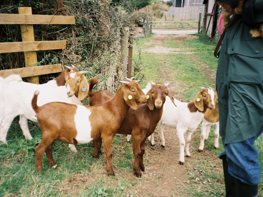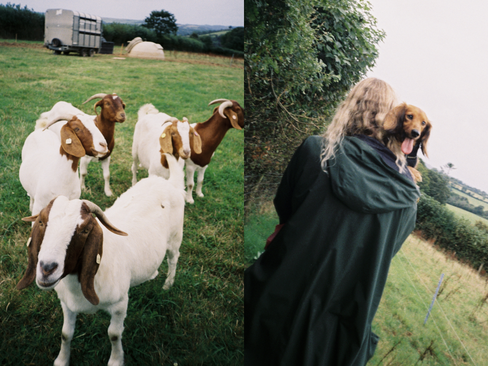 As we enter another of the many fields, that animal-first ethos that’s ever present can be seen in the galloping approach of the farm’s Boer goats and the squeals of some new arrivals: litters of palm-sized Tamworth piglets and their resting mamas. ‘Put your hand out, they might come over for a cuddle,’ George says as he hops into their pen and is welcomed like one of their own. A few brave piglets make their way over tentatively, before my dachshund Rue’s inquisition sends them scurrying away.