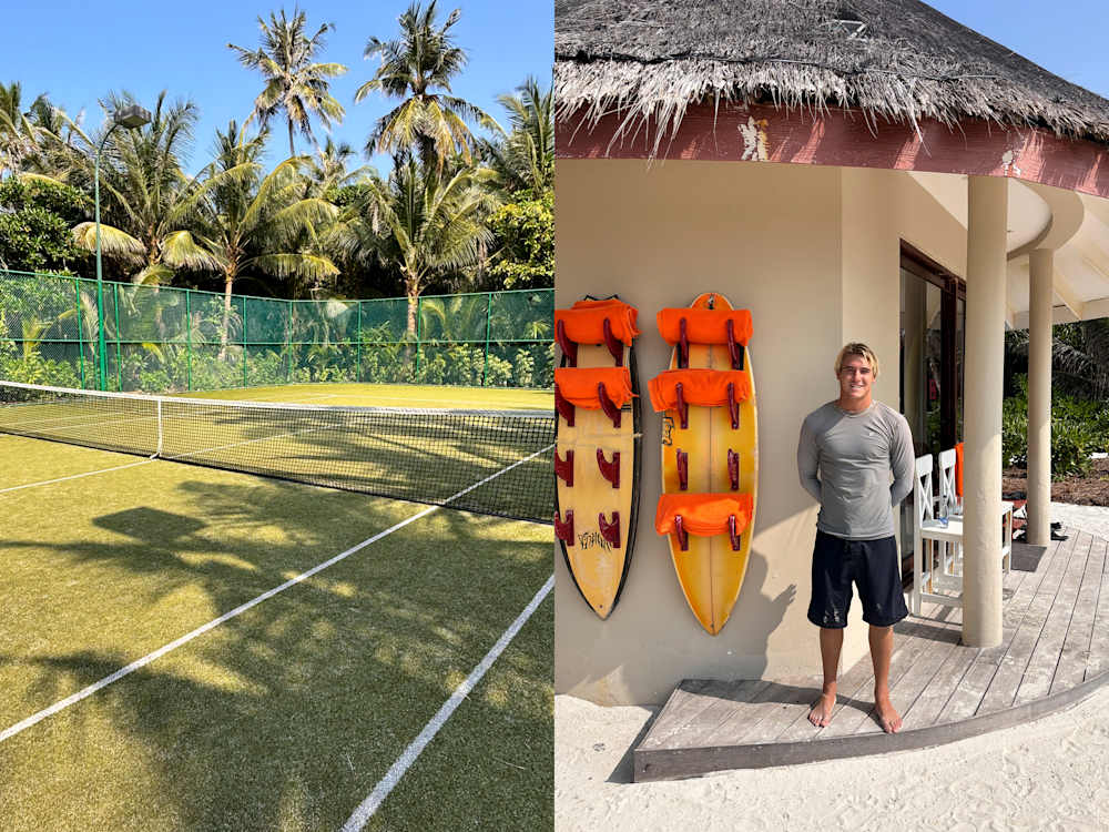 We ease ourselves into island life with morning snorkels, and tennis lessons with pro Patrick on the jungle-encased court. Our scuba-diving excursion is so indulgent, we never touch our own equipment — towels, water and staff appearing at every moment of need.