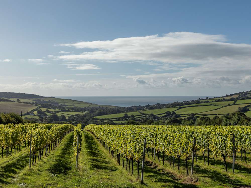 I arrive on a perfect autumn day, with bright blue skies, blazing sun and the foliage starting to turn orange, seeing Louma and its surrounding arable land and vineyards in all their glory. The view from our window could be a hazy oil painting, with the green patchwork fields of the Marshwood Vale in the distance framing the still expanse of the sun-dappled horizon. Just before the distant sea, the village of Charmouth is visible; further along the Jurassic Coast is Lyme Regis, whose cobbles and cliffs are so cinematic they were borrowed for the backdrop of the 1981 adaptation of The French Lieutenant’s Woman, starring Jeremy Irons and Meryl Streep.