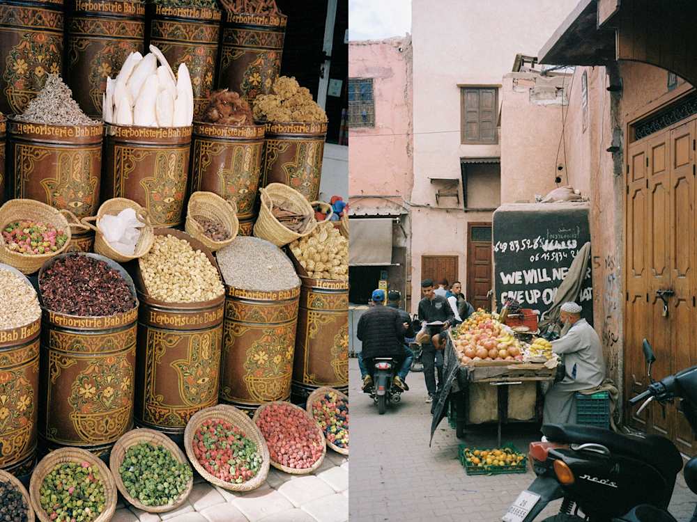 We spent the early evening on the roof, learning the art of mint-tea making — turns out there’s more to it than sloshing boiling water over a tea bag — as the sun sank behind the rooftops. It felt like a relief not to venture out for dinner; negotiating with taxi drivers in Marrakech becomes exhausting fast. Instead, four courses of traditional Moroccan dishes appeared before us, with the peaceful hum of the evening broken only by the call to prayer.