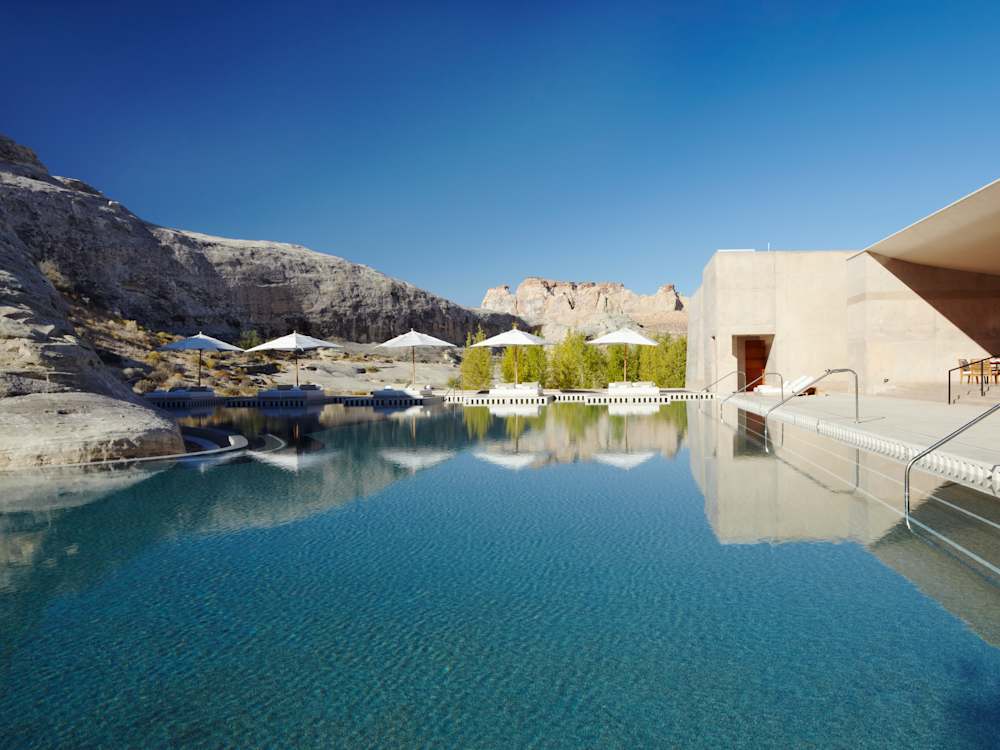 Days here look like action-film montages: horseback and helicopter rides, striding through canyons, literal cliff-hanging on via ferrata , with calming endings of prickly-pear daisies and jackrabbit-spotting amid the dunes. The kind of fantasy-driven hideaway that turns any regular guest into one of the ‘Amanjunkie’ crowd.